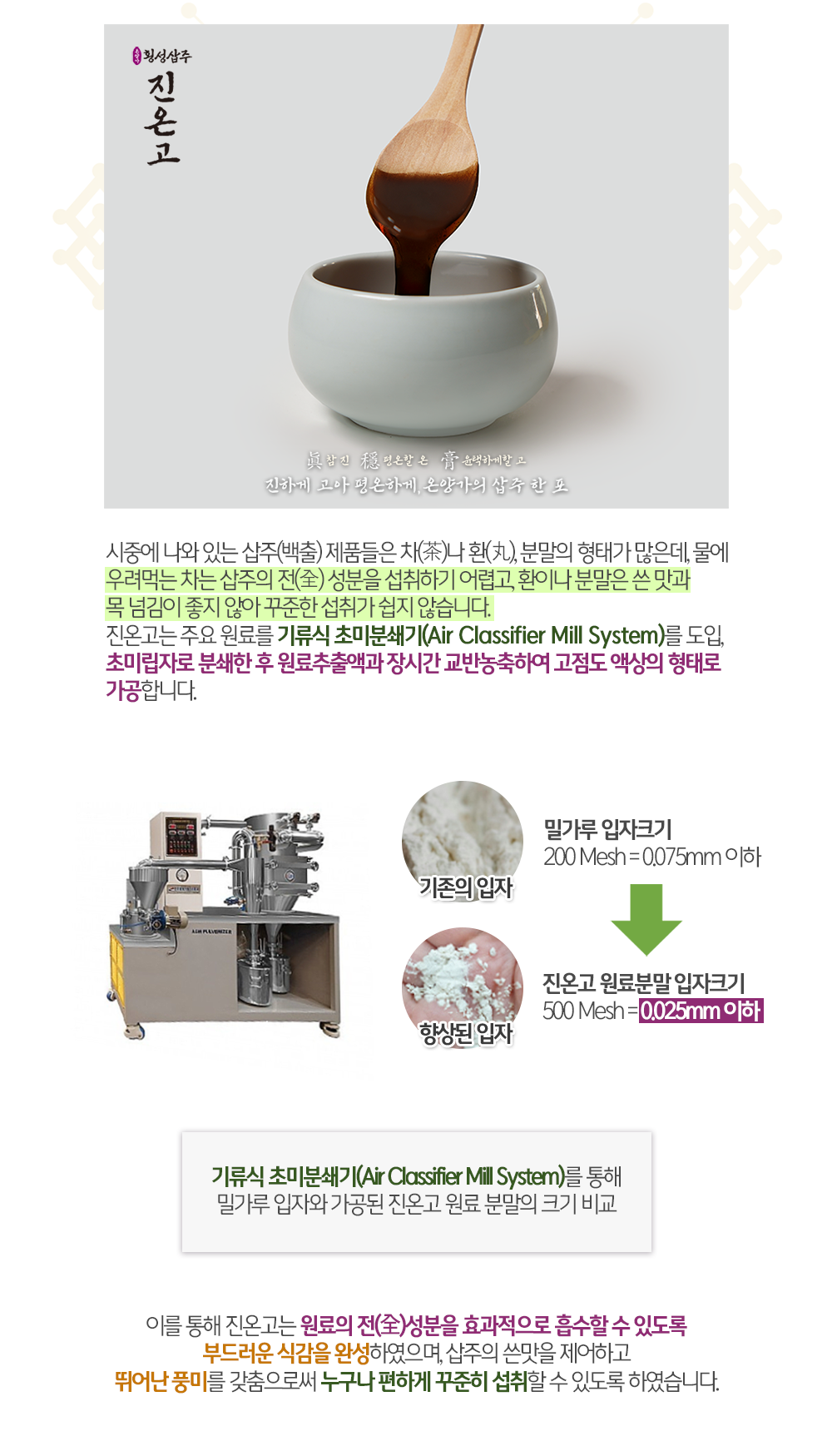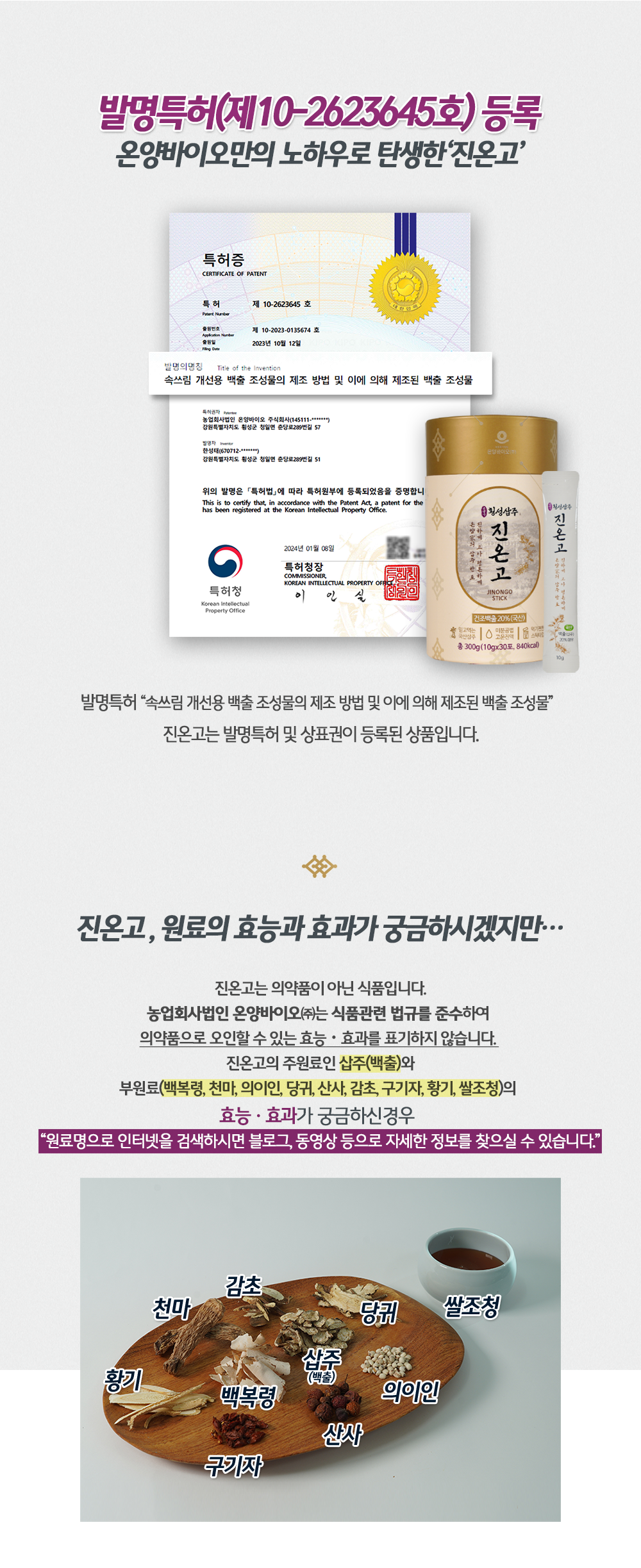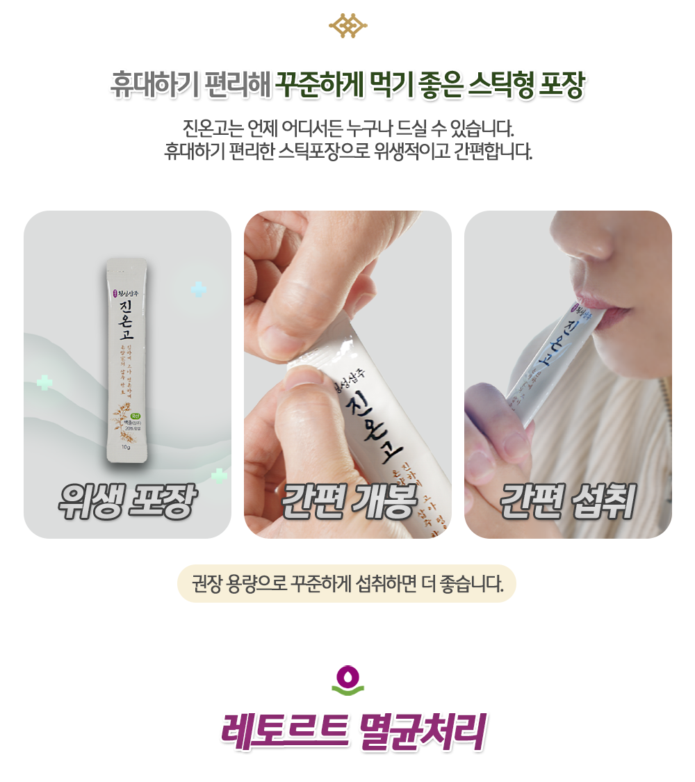 제품의 특성을 설명하는 상세 설명은 (진온고 10, 30, 50)