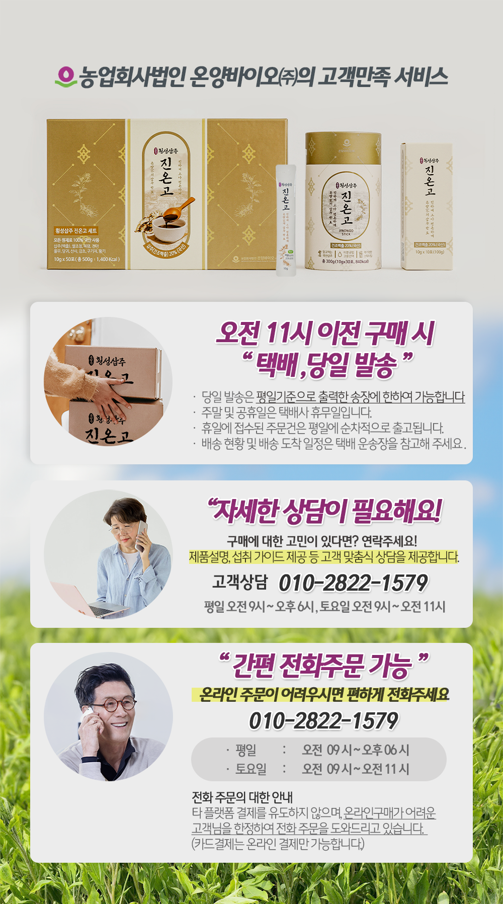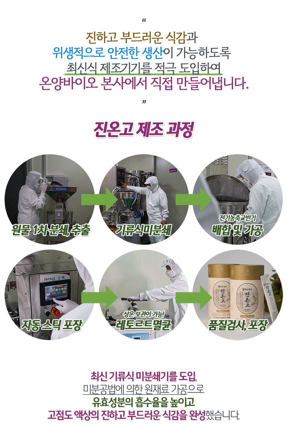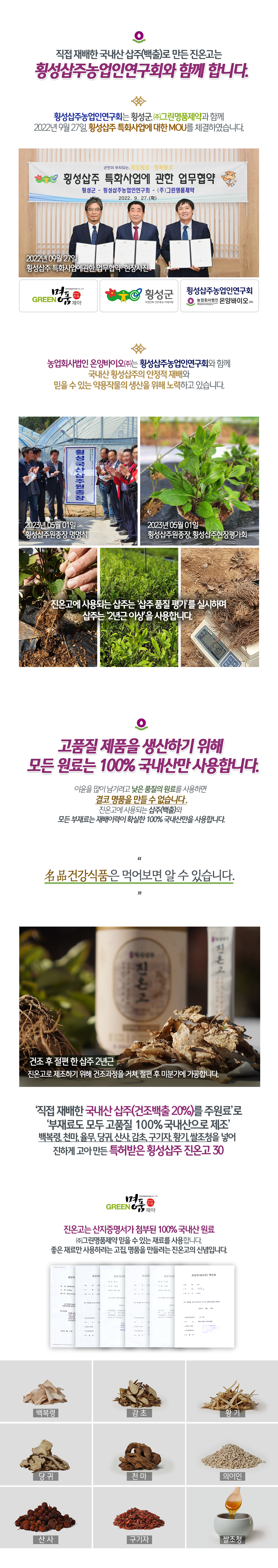 제품의 특성을 설명하는 상세 설명은 (진온고 10, 30, 50)