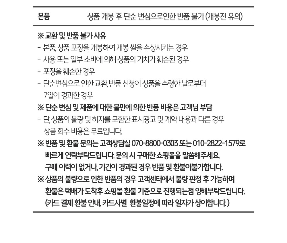 쇼핑백은 증정용으로 택배 배송중 구겨짐이 발생하거나 손상되는 경우 교환 및 환불 사유에 해당하지 않으며 교환 환불이 불가합니다.